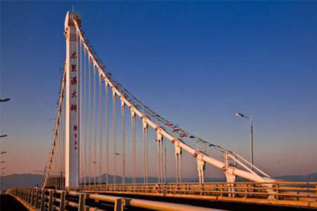福州洪塘大橋為自錨式懸索橋,主跨400m。...