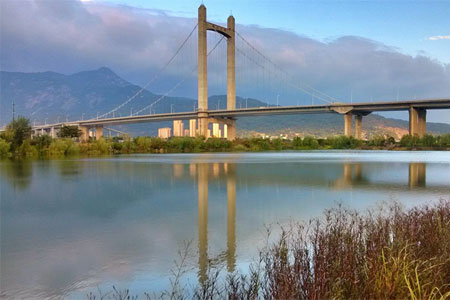 木蘭溪大橋全長860米,主橋長380米,為整體連續梁,兩邊引橋各長240米...